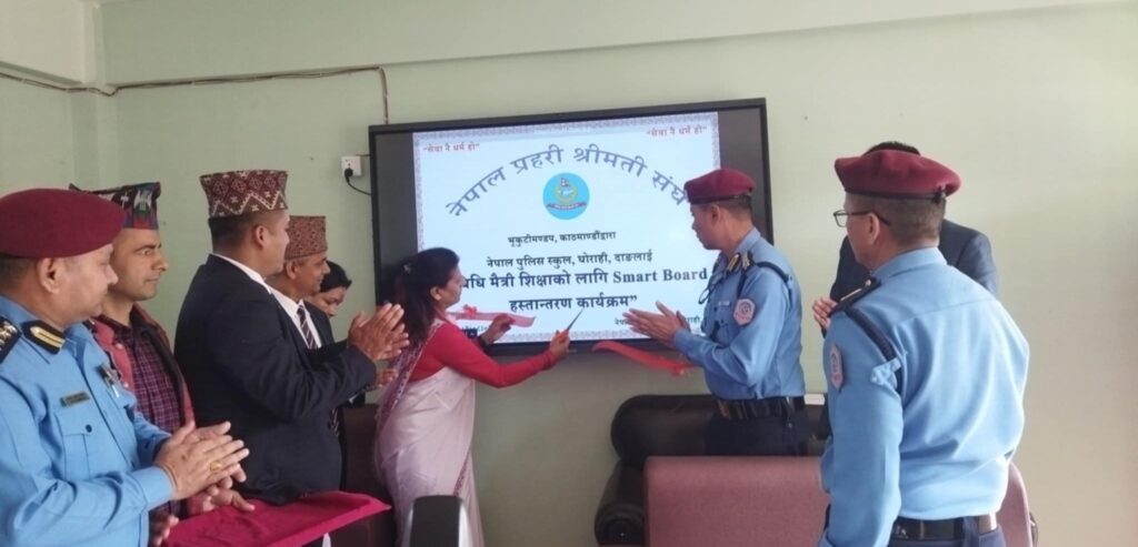 दाङ,१मंसिर। नेपाल प्रहरी श्रीमती संघ काठमाडौँले घोराहीस्थित नेपाल प्रहरी स्कुललाई दुई वटा स्मार्ट बोर्ड हस्तान्तरण गरेको छ ।