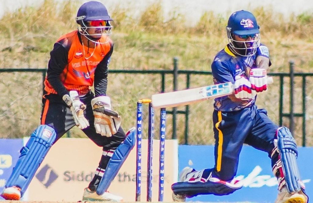 उनले ३६ बल खेल्दै ४ छक्का र ५ चौकाको मद्दतमा ६३ रन बनाउँदै विशाल पटेलको बलमा निखिल सिंहको हातबाट क्याच आउट भए । यसैगरी आरिफ शेखले ५४ बलमा १ छक्का र ४ चौकाको मद्दतमा ५५ रन बनाउँदै विशाल पटेलकै बलमा कप्तान अनिल साहको हातबाट क्याच आउट भए । दीलिप नाथ ४५ रनमा कमल गुप्ताको बलमा एलबीडब्लूको सिकार भए । ओपनर अर्जुन साउदले ४७ रनमा रञ्जित कुमारको बलमा मयन यादवले क्याच आउट गरे ।