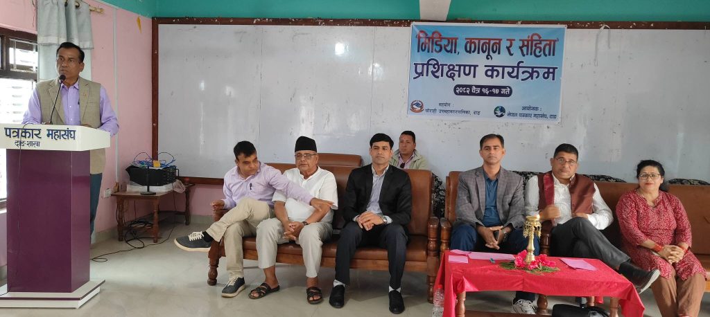 दाङ, १७ चैत । नेपाल पत्रकार महासंघको ७१औँ स्थापना दिवसको अवसर पारेर महासंघ दाङ शाखाले घोराही उपमहानगरपालिकाको सहयोगमा मिडिया, कानुन र संहिता विषयक दुई दिने प्रशिक्षण कार्यक्रमको आयोजना गरेको छ ।