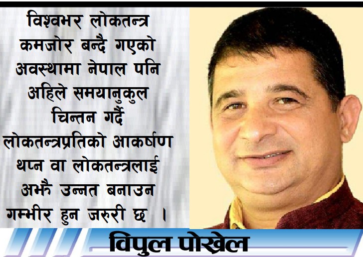 समयको कालखण्डमा लोकतन्त्रको निरन्तर अभ्यास गरिरहेकाहरुले पनि त्यसको विकल्प खोज्न थालेको देखिएको छ, जसलाई स्वाभाविक मानेर मन्थन गर्ने हो भने मात्र हामी यो अवस्थाबाट पार पाउन सक्छौँ । हालै सार्वजनिक ‘भि–डेम’ नामक संस्थाको २०२६ को प्रतिवेदनले विश्वभर लोकतन्त्र कमजोर हुँदै गएको चित्र देखाएको छ । यसले एउटा गम्भीर प्रश्न उब्जाएको छ– हामी लोकतन्त्रबाट टाढिँदै छौँ कि यसलाई जोगाउने नयाँ बाटो खोज्दैछौँ ?